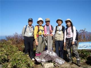 朝から快晴で天気は文句なし。参加者も早朝にもかかわらず、時間には全員そろいバスに乗車。登山口に着いて全員で準備体操をして、班毎に出発しました。