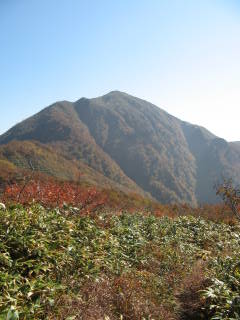 前日の雨で急登の登山道はぬかるんでいましたが、立派なぶなの原生林が立ち並ぶ中を快調に歩きました。しゃくなげ平あたりから紅葉もちらちら見られましたが、残念ながら赤くなる前に茶色に変わっているななかまどや楓の木がほとんどでした。
