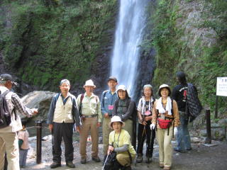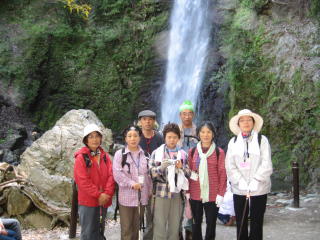 本番間際になって天気が危ぶまれるような予報が出ましたが、当日は朝から雲ひとつない上天気。気温も上昇気味でしたが、樹林帯の日陰を歩くと丁度よいくらいのハイキング日和となりました。滝ではまだ他の登山者もほとんどいなかったので全員で記念撮影しました。少し歩くと渡渉地点がありましたが、難なく全員渡り終えました。三方山、小倉山からの眺めは抜群で、御岳山、乗鞍岳、農郷白山、眼下には岐阜や愛知、名古屋方面が臨まれました。全員快調だったので山頂まで行き、今度は班毎に写真を撮り、小倉山へ戻ってゆっくり昼食タイムをとりました。あせびの花が満開でした。12:00に全員集まって記念写真です。時間に余裕があるので養老の滝まで班行動とし、そこからは自由行動でバス発15:00としました。この山は以外に花が多く、また花の名前に詳しい方がみえて、ヤマブキ、ヤエザクラ、コブシ(タムシバ?)、ミツバツツジ、イワカガミ、ミノコバイモ、バイカオウレンなどたくさんの花を見つけることができました。時間前には全員集まり、5分前には出発しました。予定より1時間30分も早く犬山駅東に到着しました。どの班もチームワークがよく、班行動もスムーズでした。皆さんのご協力に心から感謝しています。ありがとうございました。