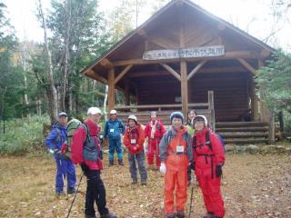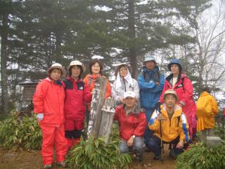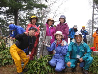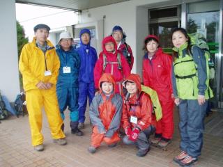 天気が予想外であいにくの雨模様となりました。当初予定では全員枯松平小屋までピストンでしたが、参加者のみなさんが快調で、風もなく、登山道も歩きやすかったので、小屋から山頂を目指すグループ(28人)と戻るグループ(5人)に分かれました。