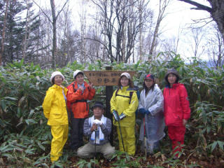 丁度その頃から雨も止み、どちらのグループも元気に登山を楽しんで歩くことができました。紅葉には少々遅かったのですが、白樺、ダケカンバ、ブナ、カラマツなどの木の幹が曇り空に映えていました。