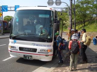 登山口の山科駅前は時間に余裕を持ってバスの降車をする場所が無い為大津のSAで班編成を行い各自のザック・装備を整えて戴きそのままバスに乗車戴きます山科駅前では速やかに降車し行動に移ります。