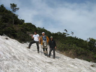 黒百合平の雪上にて