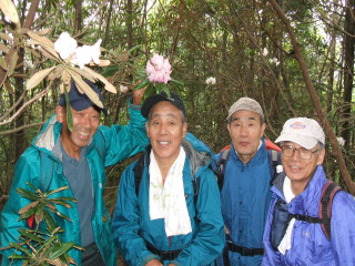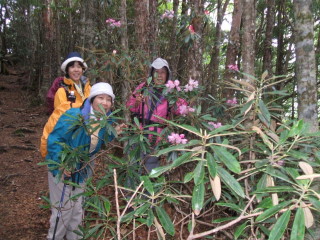 「立てばシャクヤク」の3美女とシャクナゲ