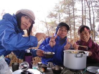 3.あずまやにて味噌鍋を囲む