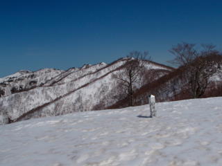 白尾山山頂。奥白尾山、鷲ヶ岳方面 |