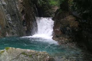 支流からの多段の滝 |