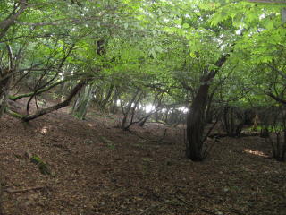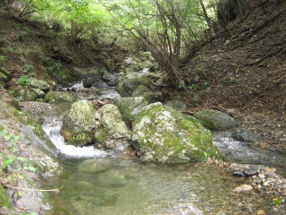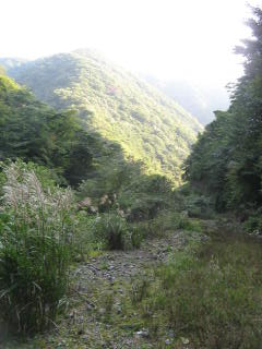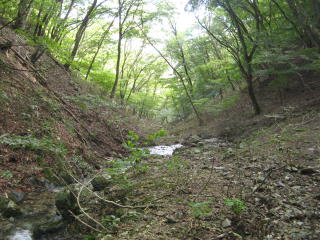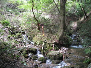 稜線上の分岐 (手前:笙ヶ岳、右:大洞谷、奥:一之瀬林道) |