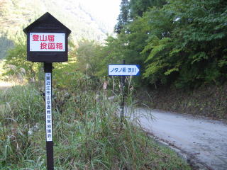 小又谷林道・茨川道分岐 茨川道へ入る |