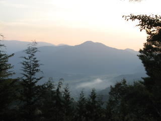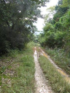 久津羅木谷源頭 林道で終わる (奥:上石津前ケ瀬、右:養老山、手前:行先不明の林道) |