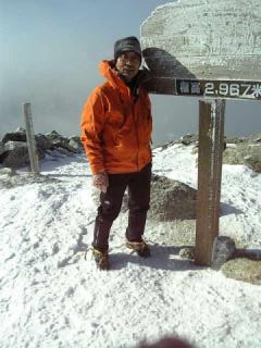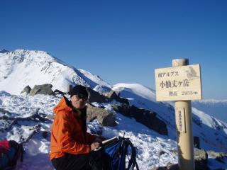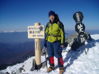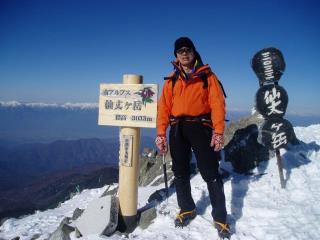 25 寒風吹き荒ぶ甲斐駒ヶ岳山頂の隊長(12/31) |