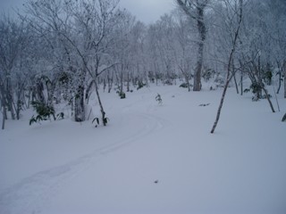山頂直下、唯一の滑走斜面