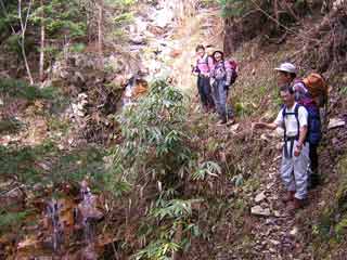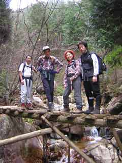 沢に架かる丸太橋