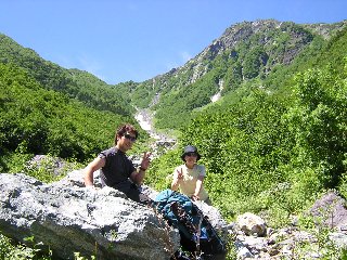 大樺沢にて バットレスをバックに