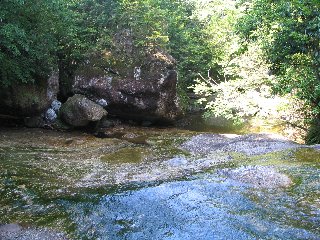 巨岩と滝